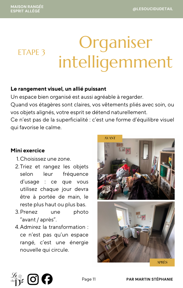 Conçu par Stéphanie Martin, experte en organisation et rangement, ce guide vous propose une méthode simple et accessible pour transformer votre maison sans pression ni perfectionnisme.