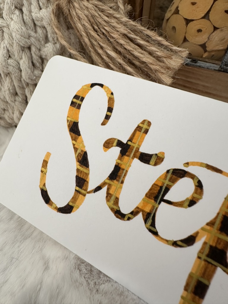 🖌️ Technique : lettering + remplissage motif tartan au feutre à main levée